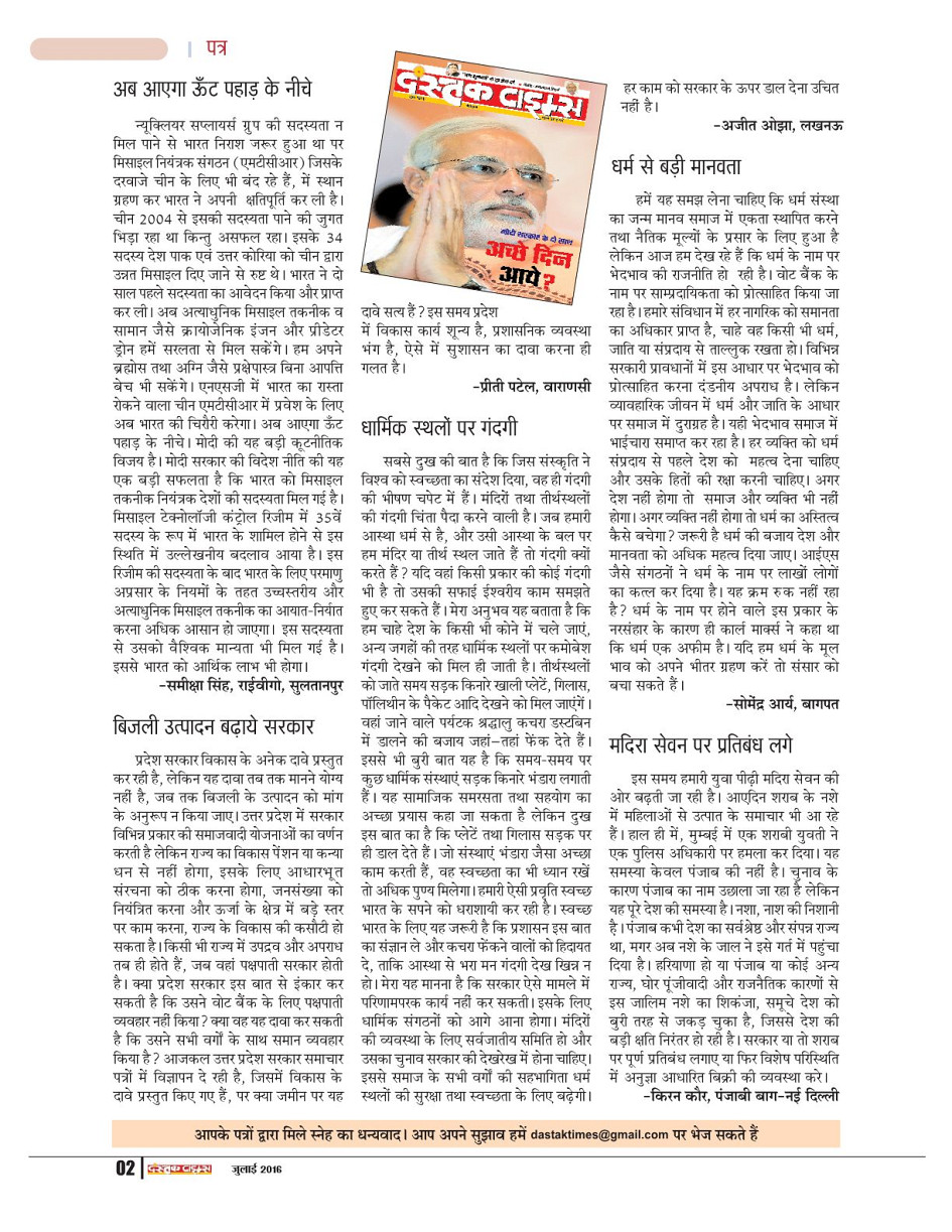 DASTAK TIMES- JULY-2016 Page: 4 July 01, 2016